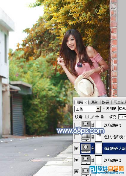 | 3、按Ctrl + J 把当前可选颜色调整图层复制一层,不透明度改为:50%,效果如下图。 |