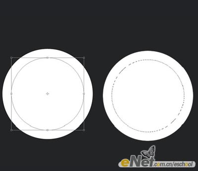 | 2、复制该图层并用自由变换工具将复制层图中的略微小一些。然后按住CTRL+点击该复制层载入其选区。下面选择 B CircLe并执行图层-图层蒙版-隐藏选区。 |