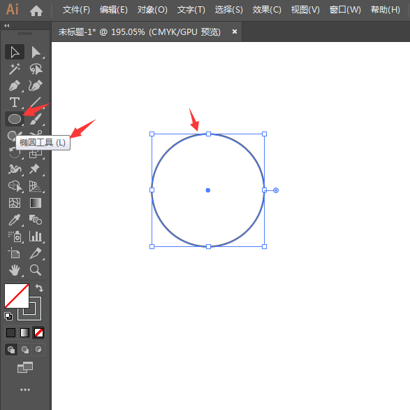 第1步、打开AI软件,点击文件菜单,点击新建空白文档,点击椭圆工具,绘制一个正圆出来,效果如下: