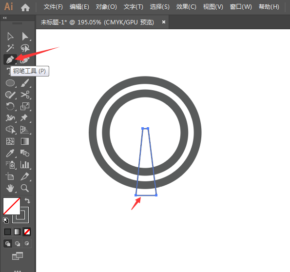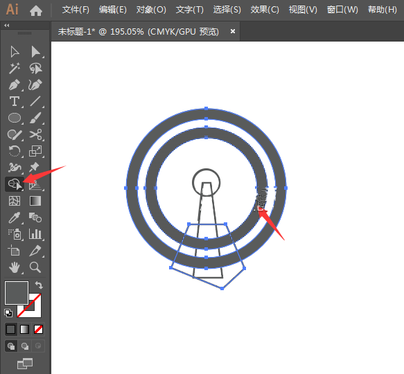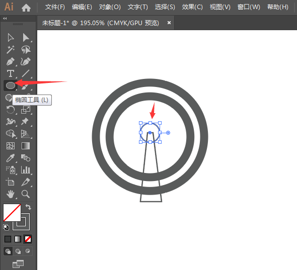 第3步、然后选中二个圆形后,设置描边加粗,效果如下: