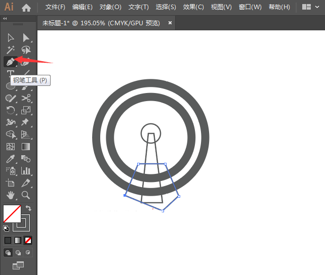 第5步、然后再使用钢笔工具,绘制下面的形状出来,效果如下: