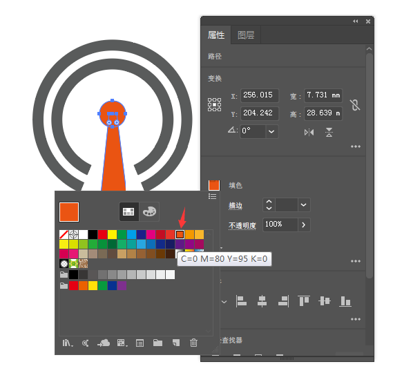 第10步、然后给里面的图形填充为橙色,效果如下: