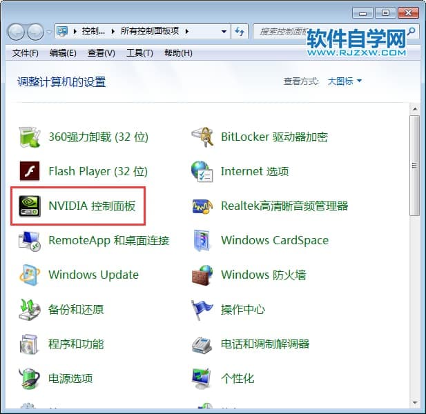 第2步、设置查看方式,大图标,点击NVIDIA控制面板。