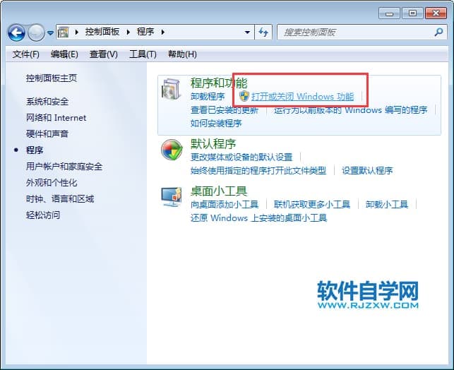 第3步、进入程序面板,点击打开或关闭windows功能。