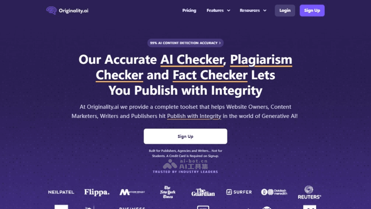 - 内容创作:作家和博客作者可以用 Originality.AI 来确保他们的作品是原创的。