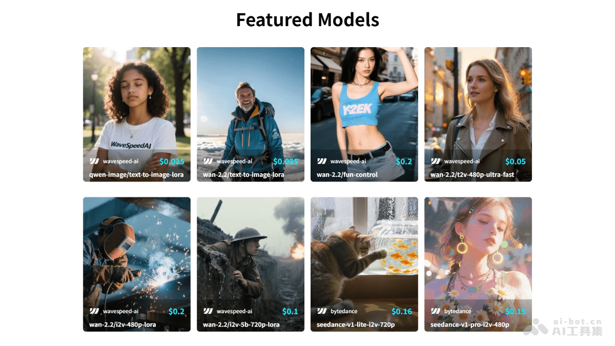 - 直接在 WaveSpeedAI 的 Web 界面中点击模型卡片开始创作。