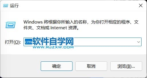 4、键入cmd并按Enter或单击OK。