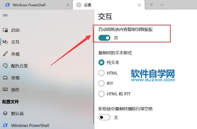 Win11电脑开启剪贴板自动复制的方法 日期:2025-12-17 10:43:21 栏目:系统教程 浏览:3 评论:0 1、打开终端页面后,点击设置选项。 2、随后在设置一栏中找到交互板块。 3、最后鼠标勾选打开自动将所选内容复制到剪贴板按钮即可。 上一篇:AutoCAD中CAD标准文件后缀名为( ) 下一篇:精选幼儿园年度工作计划 相关推荐 建筑造价实习总结 工作失职个人检讨书10篇 2022财务半年工作总结8篇 顶岗实习学生劳务协议书 评论留言 我要留言 ◎欢迎参与讨论,请在这里发表您的看法、交流您的观点。 昵称:* 邮箱:* 网址: 内容: 取消回复