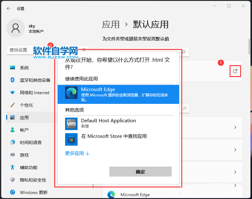 5、想要切换.html文件的打开方式应用,直接点击【Microsoft Edge】浏览器右侧的箭头小图标进行选择即可。