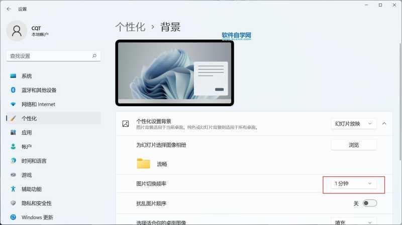 win11怎么给电脑背景图片设置幻灯片效果 日期:2025-12-16 11:43:35 栏目:系统教程 浏览:8 评论:0 1、点击电脑桌面上的开始菜单。如下图: 2、点击设置图标。如下图: 3、点击个性化图标,点击背景设置。 4、点击设置选项,选择幻灯片放映: 5、设置图片切换频率。 6、设置1分钟即可。 上一篇:Win11如何重装显卡驱动程序? 下一篇:实习工作个人报告10篇 相关推荐 大学生三下乡社会实践报告(11篇) win11怎么清理微信内存?win11清理微信内存的方法 Win11优化服务的方法Win11如何优化服务? 在CAD中用POLYGON命令画成得一个正六边形,它包含()个图元 评论留言 我要留言 ◎欢迎参与讨论,请在这里发表您的看法、交流您的观点。 昵称:* 邮箱:* 网址: 内容: 取消回复
