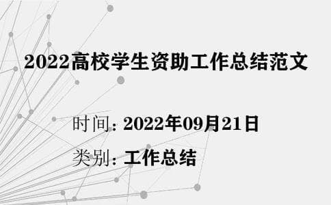 总结是把一定阶段内的有关情况分析研究,做出有指导性的经验方法以及结论的书面材料,那么一起看看高校学生资助工作总结怎么写吧!下面给大家分享2022高校学生资助工作总结范文,欢迎阅读!