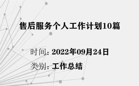 时间过得可真快,从来都不等人,我们的工作又进入新的阶段,为了在工作中有更好的成长,是时候开始写工作计划了。相信大家又在为写工作计划犯愁了吧!下面是小编为大家整理的关于售后服务个人工作计划,如果喜欢可以分享给身边的朋友喔!