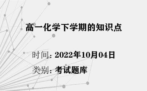 由于高一的化学知识具有繁,难,乱的特点,所以不少同学对学习高一的化学知识感到困难,不知道哪些知识才是重点。下面小编为大家带来高一化学下学期的知识点,希望对您有所帮助!