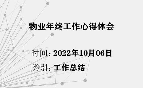物业含有多种业态,如:办公楼宇、商业大厦、住宅小区、别墅、工业园区、酒店、厂房仓库等多种物业形式。下面小编给大家带来物业年终工作心得体会,希望能帮助到大家!