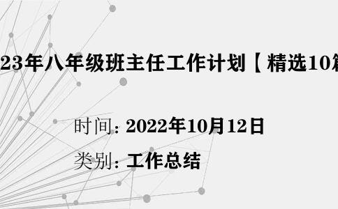 时间稍纵即逝,我们又将接触新的知识,学习新的技能,该为自己下阶段的学习制定一个计划了。下面是小编给大家整理的2023年八年级班主任工作计划,仅供参考希望能够帮助到大家。