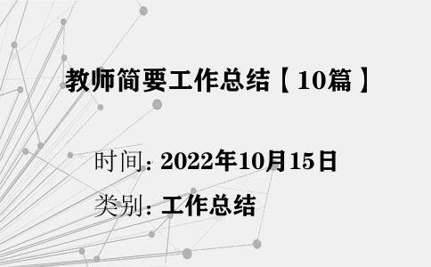 教师简要工作总结怎么写你知道吗?总结是事后对某一阶段的工作或某项工作的完成情况,包括取得的成绩、存在的问题及得到的经验和教训加以回顾和分析。下面是小编为大家整理的教师简要工作总结,仅供参考,喜欢可以收藏分享一下哟!