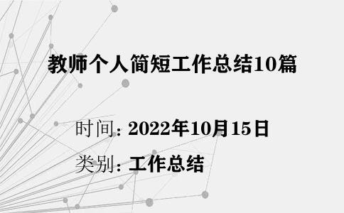 教师工作总结应该怎么写呢?总结都是以第一人称,从自身出发。它是单位或个人自身实践活动的反映。下面是小编为大家整理的教师个人简短工作总结,仅供参考,喜欢可以收藏分享一下哟!