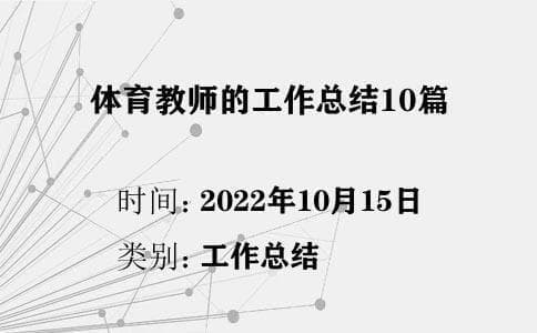体育教师的工作总结怎么写你知道吗?工作总结的内容行文来自自身实践,其结论也为指导今后自身实践。下面是小编为大家整理的体育教师的工作总结,仅供参考,喜欢可以收藏分享一下哟!