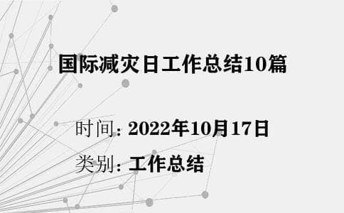 总结是经验的反思与积累,不经意间,工作已经告一段落,这段时间里,相信大家面临着许多挑战,也收获了许多成长,是不是该好好写一份工作总结记录一下呢?你所见过的工作总结应该是什么样的?以下是小编为大家整理的国际减灾日工作总结,希望能够帮助到大家。