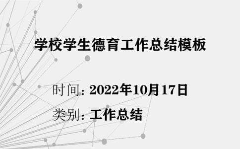 小学教育主要是形成性教育。一个人能否养成良好的行为习惯和高尚的道德品质,取决于小学阶段的教育,尤其是较低阶段的教育。下面是小编为大家整理的关于学校学生德育工作总结模板,欢迎大家来阅读。