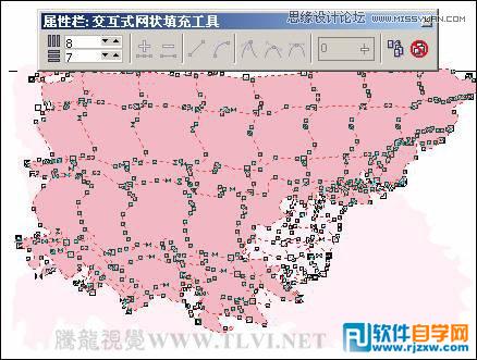 (2)使用工具箱中的“交互式网格填充”工具,在粉色图形上单击,接着参照图2-33所示设置其属性栏参数。