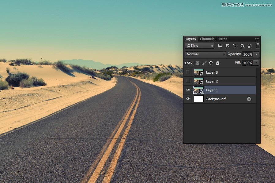 将背景图拖进来,右键转换成智能对象,复制两次,这样你就有了3个相同的图层