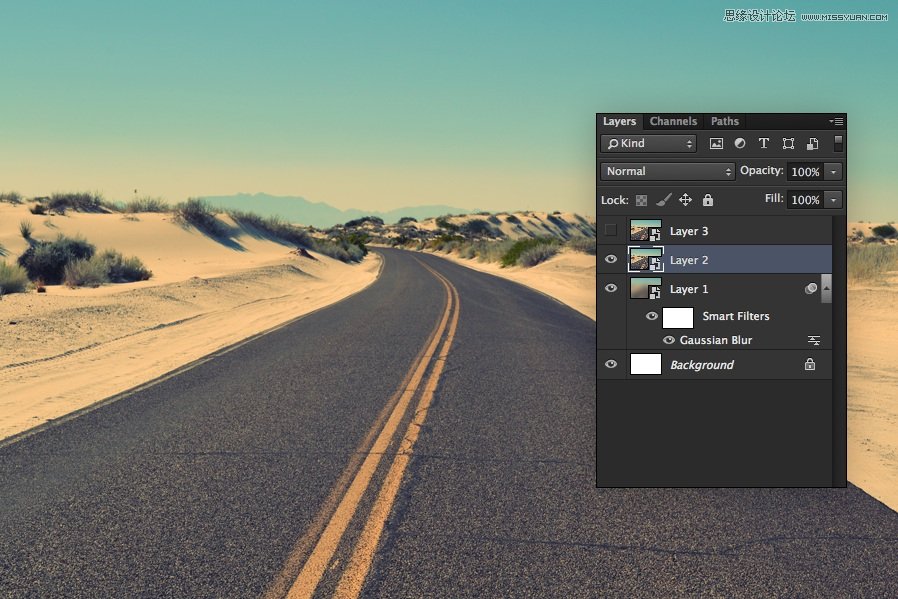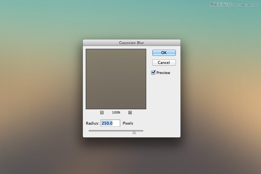在第一个背景图层里应用高斯模糊,半径是250 px。