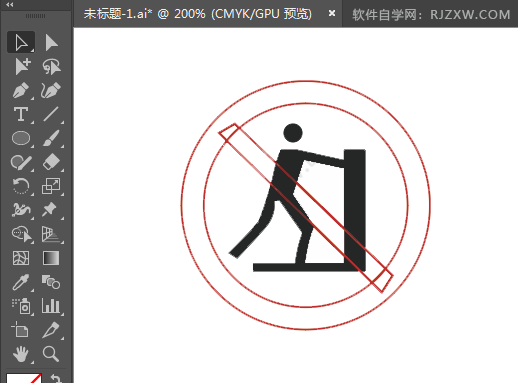 6、最后绘制一个长方形,填充红色,在红色上面输入禁止推动标语。效果如下: