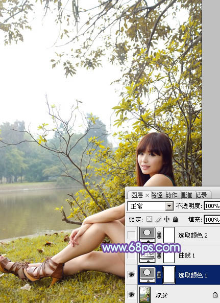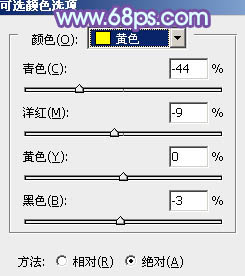 一、打开素材图片,创建可选颜色调整图层,对黄、绿、黑进行调整,参数设置如图1 - 3,效果如图4。这一步把背景部分的绿色转为暗黄色。