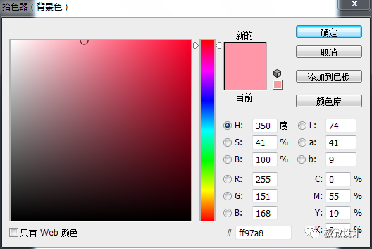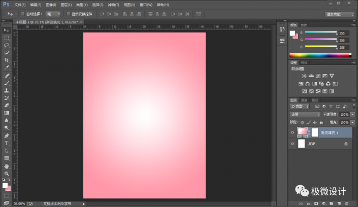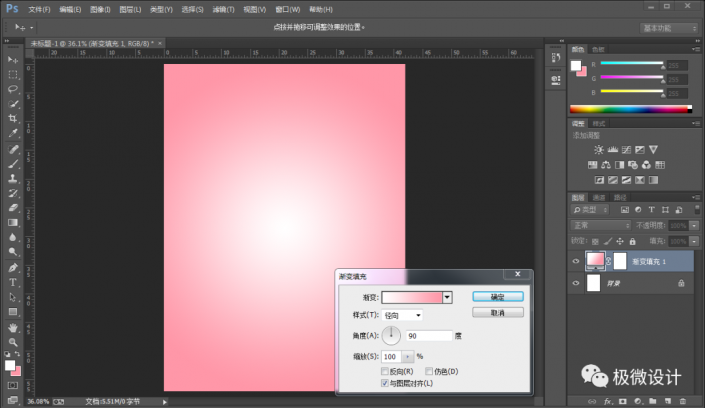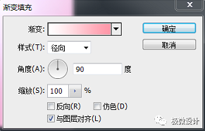 设置,前景色:#ffffff、背景色:#ff97a8;接着点击选择:图层 >新建填充图层 >渐变,就得到“渐变映射 1 ”图层;然后在“渐变映射 1 ”图层的‘渐变填充’面板,设置(渐变:前景色到背景色渐变、样式:径向、角度:90度、缩放:100%、把‘与图层对齐’打勾),好了后点击‘确定’