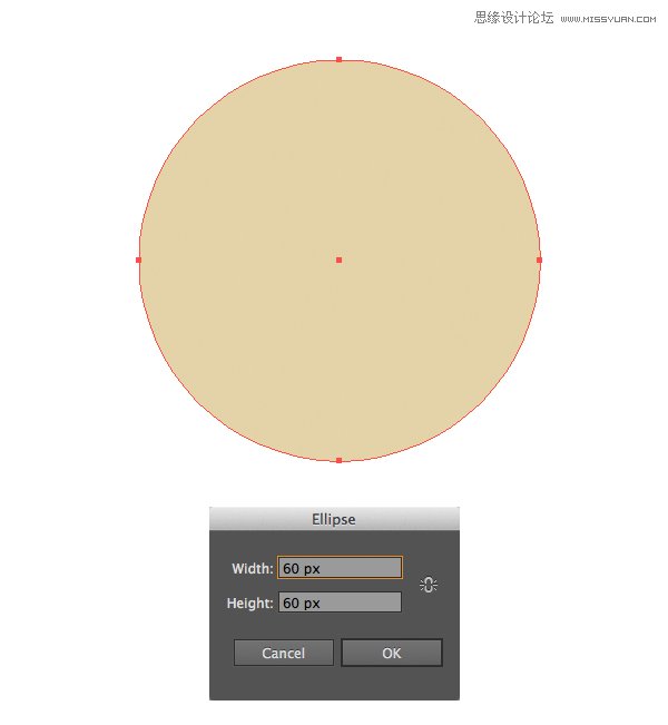 首先从一个由椭圆工具(L)制作的60*60 px大小的圆形成猫的脸。 用浅褐色填充这个圆。