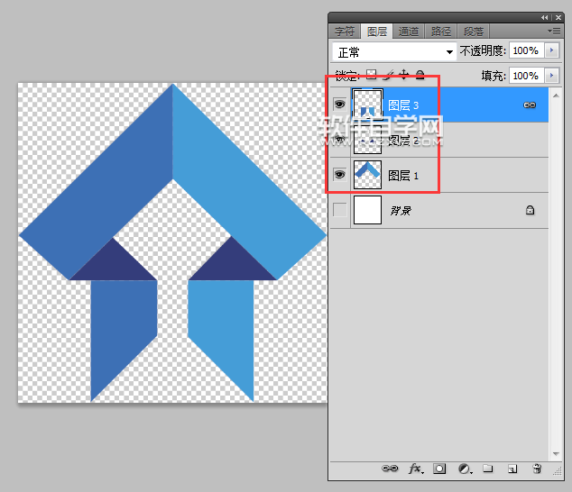 第2步、然后就可以新建三个图层,效果如下: