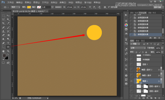 5.制作第二个(太阳分三个图层,椭圆工具变形)