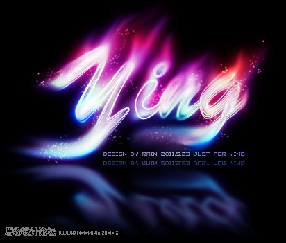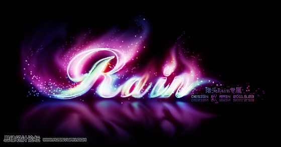 | 5、给文字添加图层样式,选择外发光:颜色选择紫红色,不透明度设置为58%,大小为:40。 6、把刚才隐藏的文字图层显示出来,然后载入文字选区,新建一个图层右键选择描边:像素1,白色。然后把旧的字体层删除,效果如下图。 7、复制几个描边的图层,按Ctrl + T 轻微旋转一下,然后合并这个描边图层,用涂抹工具抹一下子的开头和结尾部分,保留中间些许白线,效果如下图。 |