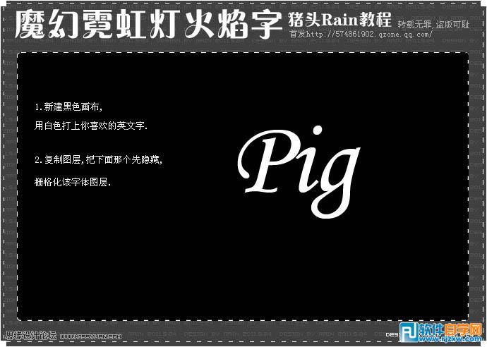 | 1、新建一个大小自定的黑色画布,用白色打上你喜欢的文字。 2、复制图层,把下面那个先隐藏,然后栅格化该字体图层。 |