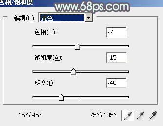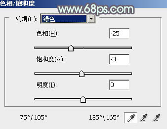 五、创建色相/饱和度调整图层,对黄色,绿色进行调整,参数设置如图6,7,效果如图8。这一步把图片中的黄绿色转为中性色。