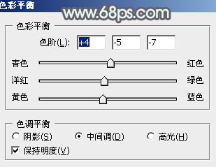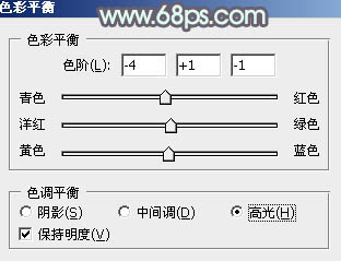 十、创建色彩平衡调整图层,对阴影、中间调,高光进行调整,参数设置如图28 - 30,效果如图31。这一步加强图片暗部及高光部分的颜色。
