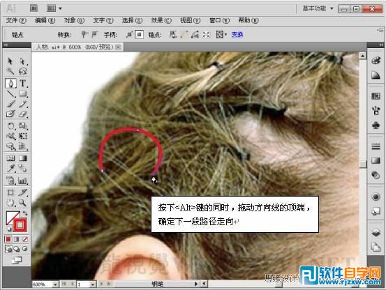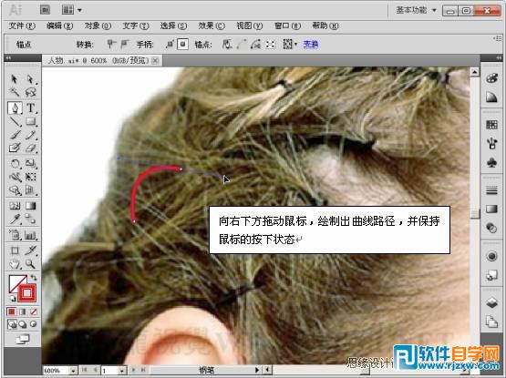 (4)确定直线路径的结束锚点为可编辑状态,绘制曲线路径。