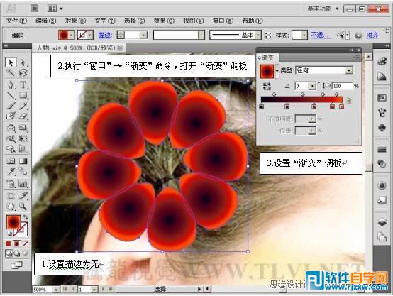 (1)运行Illustrator CS5,执行“文件”→“打开”命令,打开“人物.ai”素材文件。
