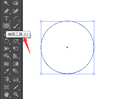 第1步、点击椭圆工具,绘制一个大圆作为直线旋转的参考圆。