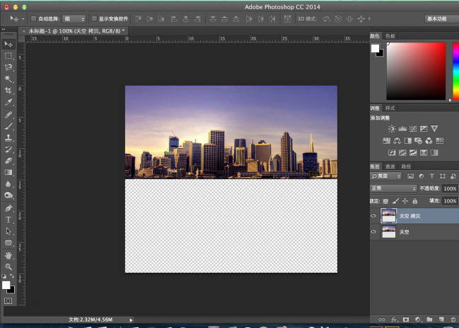 3、按上述方法设置后,点击确定,得到下图效果所示后,拷贝“天空”层,command+J或ctrl+J获得。