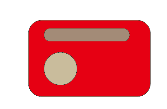 第6步、然后再选中矩形,然后填充红色,正圆与小矩形填充为金色,效果如下:
