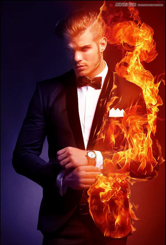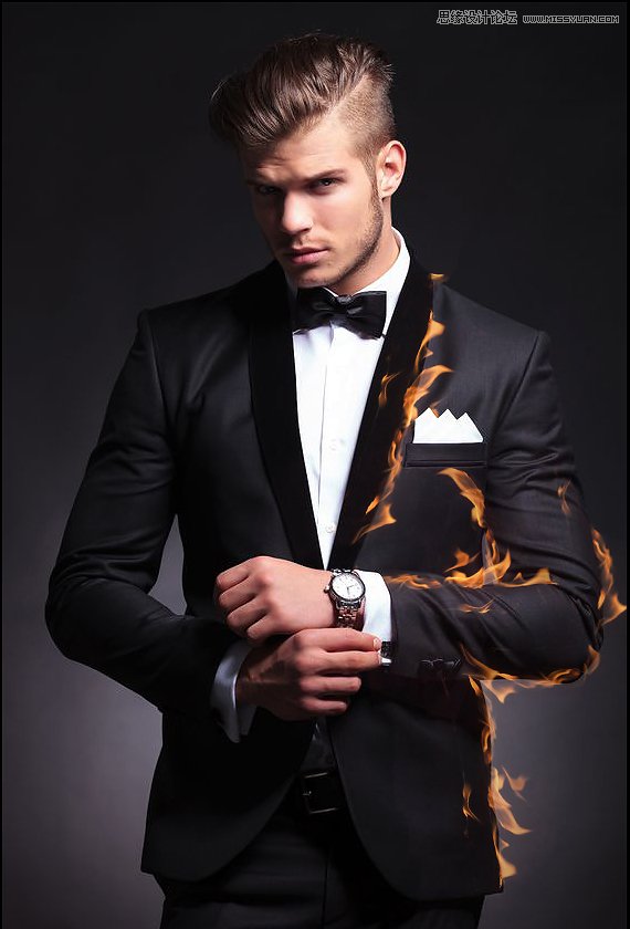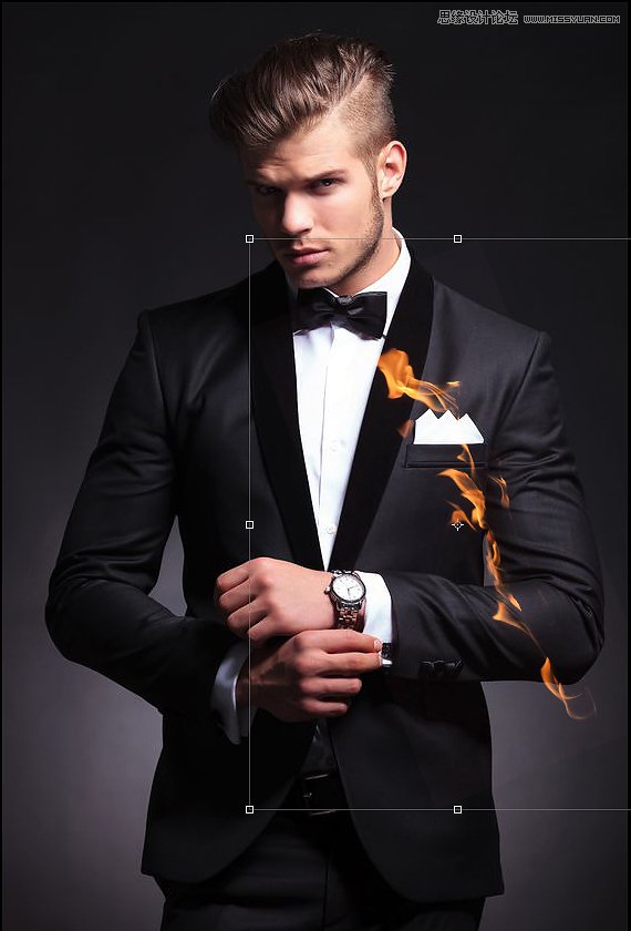 然后,我给火焰图像添加了个图层蒙版,让它不会出现在里面的胳膊上。