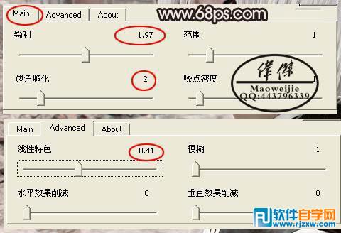 | 2、选择菜单:图像 > 模式 > RGB颜色,确定后选择不合拼,然选择Topaz滤镜锐化一下,参数设置如下图。 |