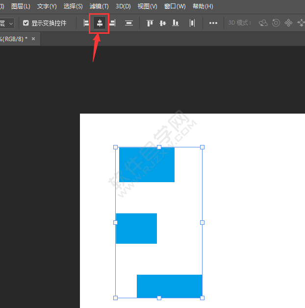 4、这样三个矩形对象都进行了居中对齐,效果如下: