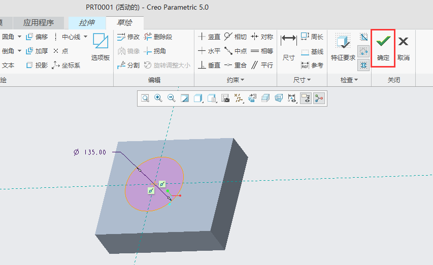 6、草绘圆绘制好后,点击确定。