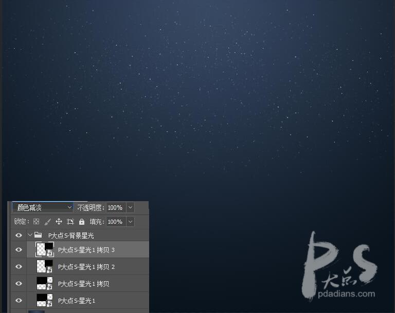 置入“星光1”素材,图层模式为“颜色减淡”。将素材放到图中靠左的位置,复制一层,让星光看起来更亮一些。