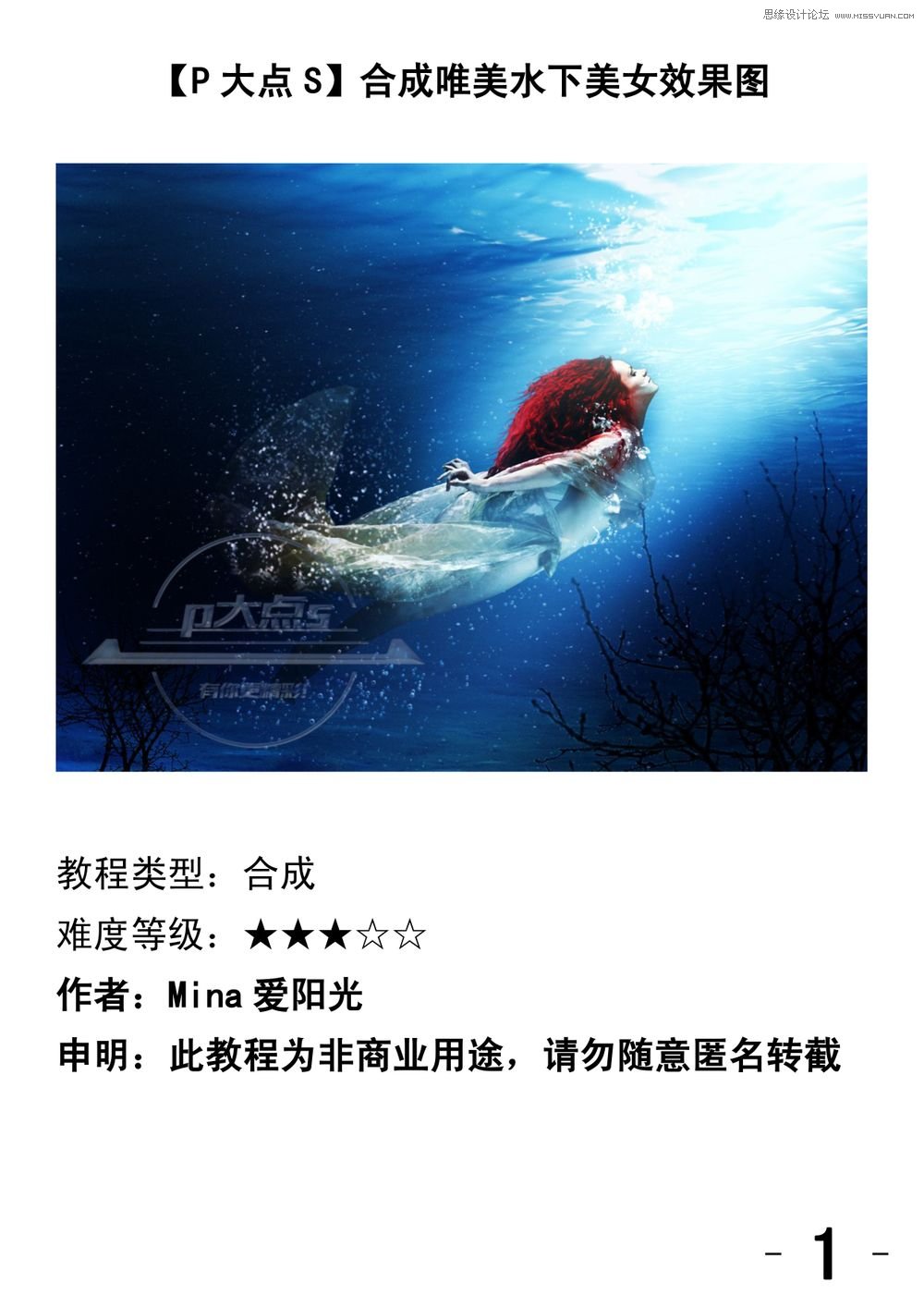 本主要使用海底唯美的人像效果图,夏天到期估计很多人都会想去游泳享受水底的冰凉,所以今天作者做了一个关于水下美女合成的教程,主要利用一些素材后期合成模拟水下摄影的效果,喜欢的朋友一起来学习吧。
