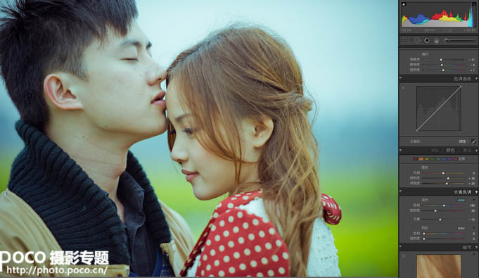 一、用Adobe Photoshop Lightroom 3.5打开Raw文件,调整白平衡曝光等参数,大幅提升高光修正是为了压暗天空均衡画面光比。具体参数:白平衡色温4414、色调-5;曝光度+0.60、高光修整87、补光效果30、黑色色阶10;亮度+67、对比度+60;清晰度-11、鲜艳度-6、饱和度+1。