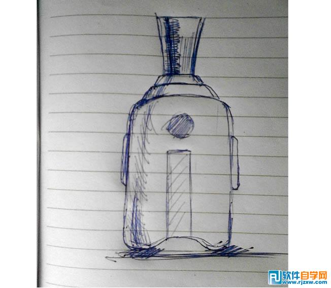 | 1、在纸张上设计并画出酒瓶的草稿图,并最终确定瓶子的造型。 |